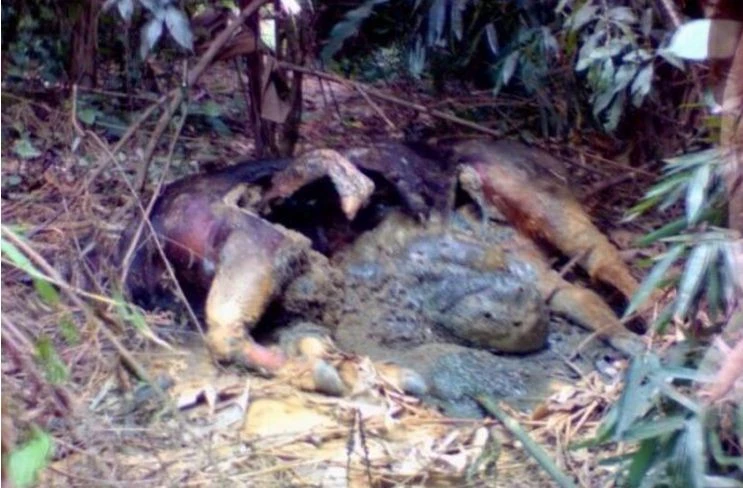 Trước đó, chiều 8-6, một số người dân xã Nghĩa Hành (huyện Tân Kỳ, Nghệ An) đi săn mật ong rừng phát hiện xác một con bò lớn đang phân hủy mạnh trong rừng phòng hộ thuộc lô 4, khoảnh 3, tiểu khu 919 (địa bàn xã Vĩnh Sơn, huyện Anh Sơn).