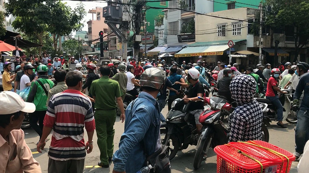Nạn nhân sau đó tri hô, cùng người dân và đội tuần tra của Công an quận 11 truy bắt. Khi đến trước tiệm game bắn cá trên đường Tuệ Tĩnh (phường 13, quận 11), nghi can xông vào trong cố thủ.