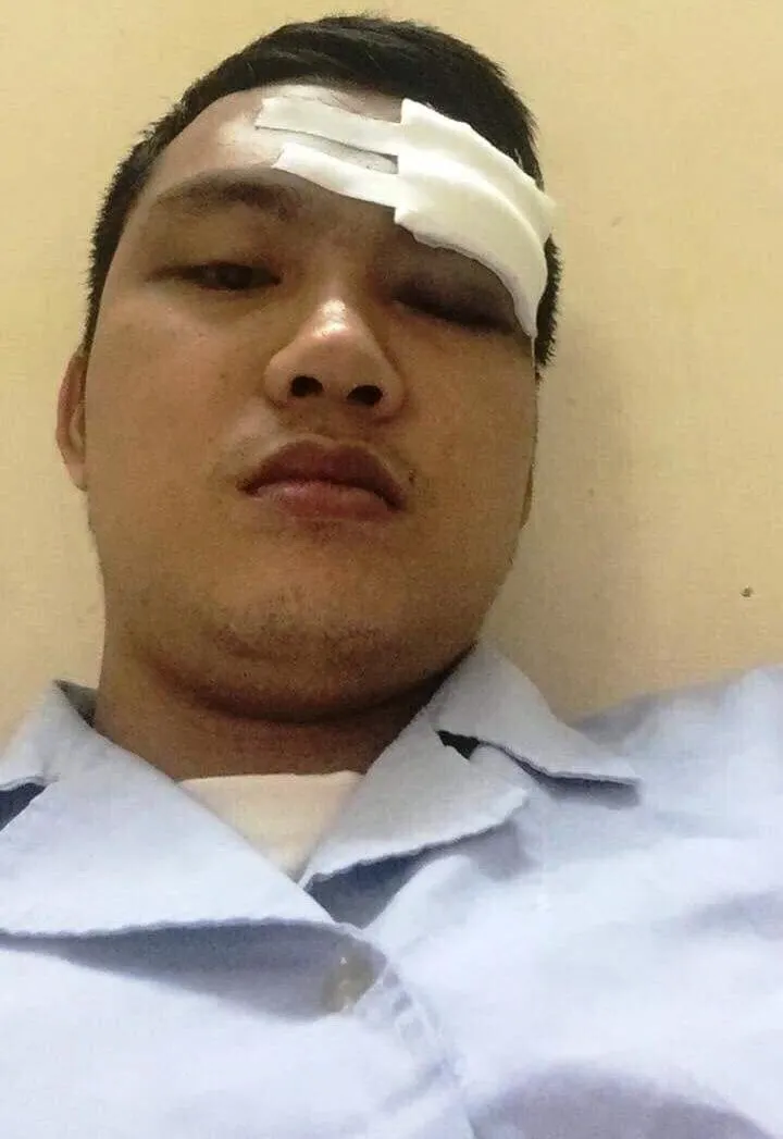 Sau khi bị đánh, thực tập sinh Trần Nhật Giáp phải khâu 3 mũi và theo dõi chấn động não.