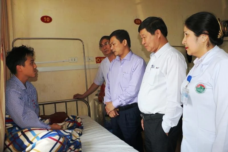 Lãnh đạo Sở Y tế tỉnh Hà Tĩnh thăm hỏi, động viên BS Nguyễn Đình Phi.
