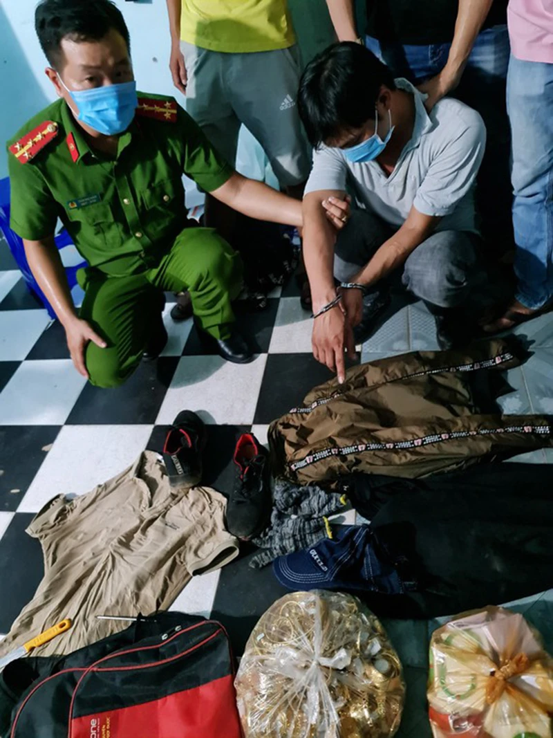 Khám xét khẩn cấp nơi tạm trú của Hoàng ở phường Tam Quan Bắc, thị xã Hoài Nhơn (Bình Định), lực lượng công an thu giữ tang vật vụ trộm và công cụ gây án.