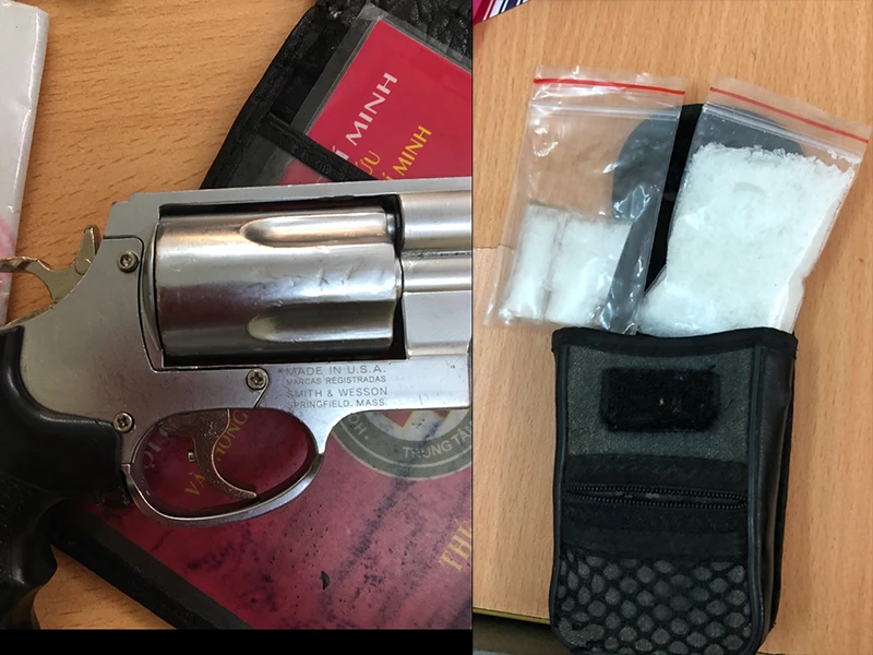 Ngoài ra cơ quan chức năng còn thu giữ trong người của Tấn Anh một khẩu súng Rulo cùng năm viên đạn trong ổ đạn.