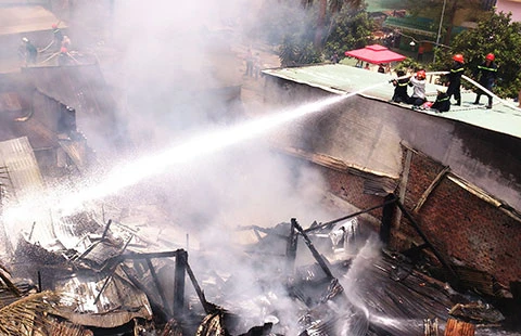Nhận tin báo, Phòng Cảnh sát PCCC quận 4, 1, 8 và cảnh sát PCCC trên sông đưa hơn 10 xe nước chuyên dụng cùng 156 cán bộ, chiến sĩ tới hiện trường dập lửa. Hơn 30 phút sau, hỏa hoạn cơ bản được khống chế song lửa vẫn còn âm ỉ bên trong. Các chiến sĩ vẫn phải tích cực phun nước ngăn bùng phát trở lại.