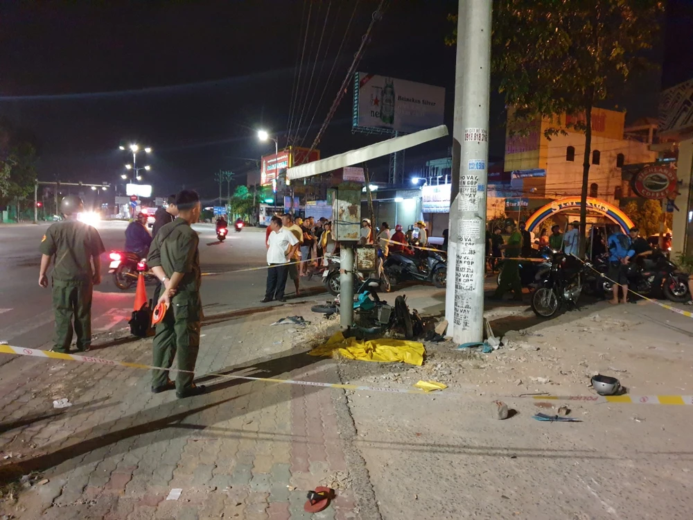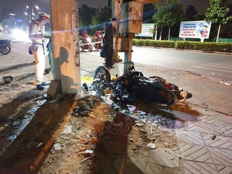 Khi tới đoạn ngã ba giao nhau giữa đại lộ Bình Dương và đường Hoàng Hoa Thám (phường Hiệp Thành, TP Thủ Dầu Một), mặc dù đèn đỏ nhưng hai chiếc xe không giảm tốc độ. Chiếc xe máy do H. lái lao lên lề đường rồi đâm trúng cột điện.