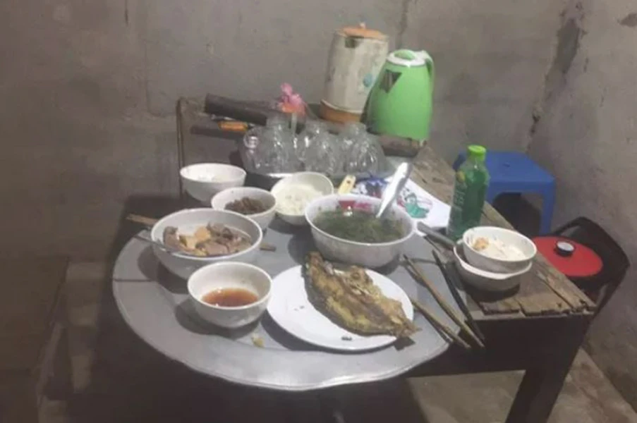 Hiện trường cho thấy bữa cơm gia đình còn chưa xong thì xảy ra vụ việc