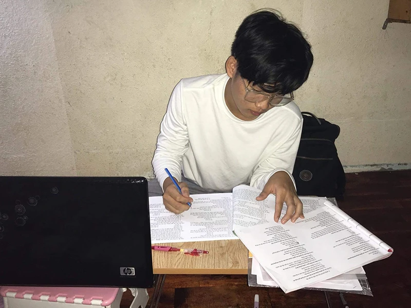 Học sinh Trường THCS - THPT Đào Duy Anh (TP.HCM) ôn bài tại nhà trong thời gian nghỉ học tránh dịch. Ảnh: NTCC