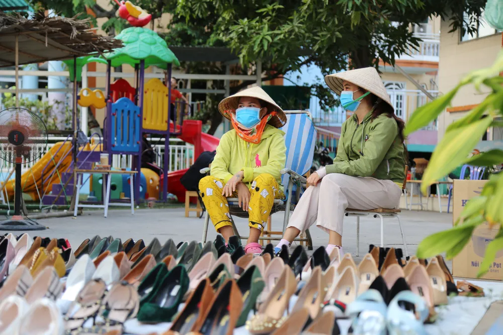 Các cô giáo Trường Mần non Ngôi nhà trẻ thơ (quận 12, TP.HCM) bán hàng kiếm thêm thu nhập trong thời gian trẻ nghỉ học vì dịch COVID-19. Ảnh: HOÀNG GIANG