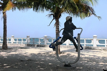 Tuy nhiên, điều thú vị nhất được các du khách rất quan tâm, đó là dọc công viên bờ biển có cả trăm dụng cụ thể dục đủ các loại, được đặt trải dài đến vài cây số, qua đó giúp du khách sau tắm biển có thể rèn luyện sức khỏe.