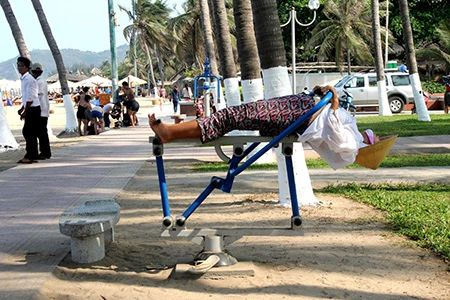 Những dụng cụ tập thể dục tại bờ biển Nha Trang.