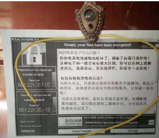 Nội dung thư tống tiền của WannaCry được viết bằng tiếng Trung Quốc. Ảnh: SCMP