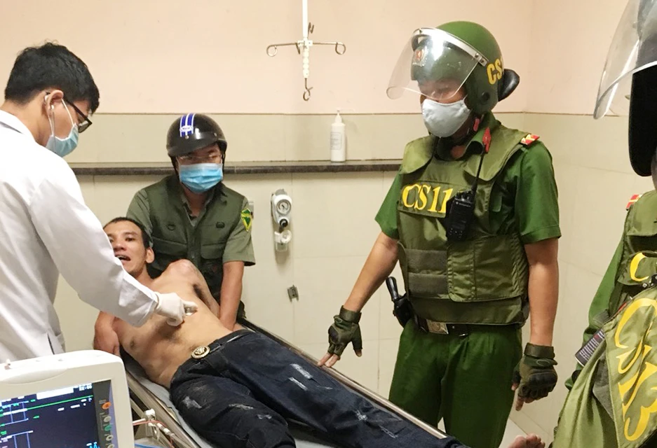 Cảnh sát 113 đã kịp thời khống chế được Phi, đưa đến bệnh viện điều trị thương tích.