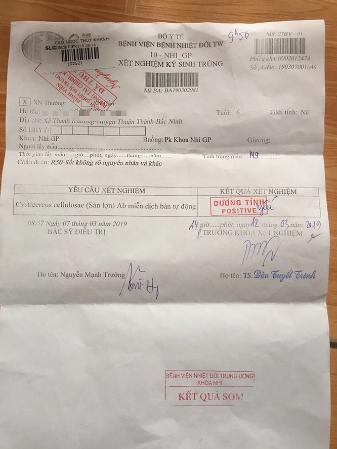 Sau khi tiếp nhận, BV đã tiến hành xét nghiệm 173 mẫu, phát hiện 44 trường hợp đã từng nhiễm sán lợn, không phải cấp tính. Tuy nhiên, nếu nhiễm trong thời gian dài sẽ dẫn đến chậm phát triển thể lực.