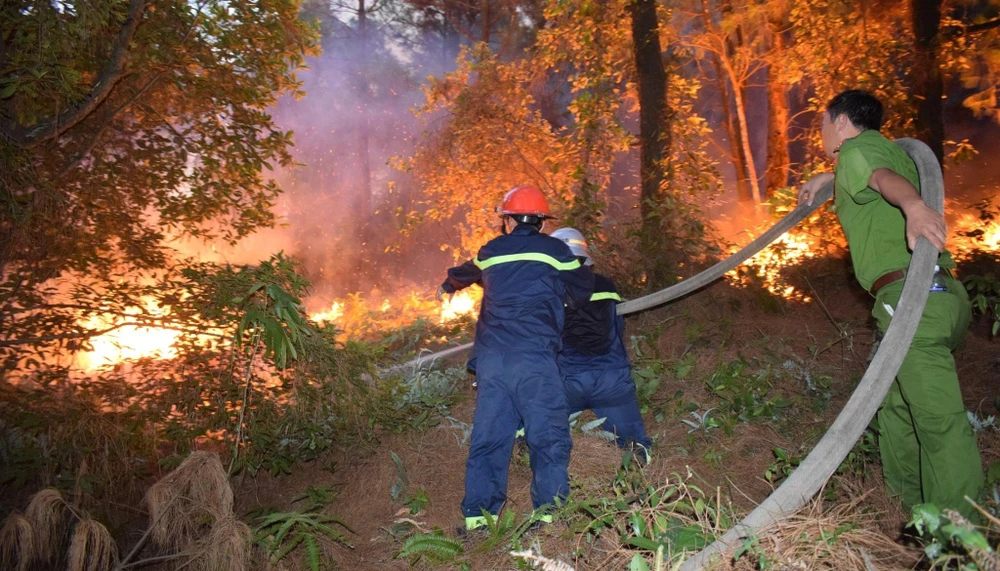 Đến rạng sáng 30-6, Công an huyện Nghi Xuân, Cảnh sát PCCC Hà Tĩnh, Nghệ An đang nỗ lực dập lửa cháy rừng Hồng Lĩnh.