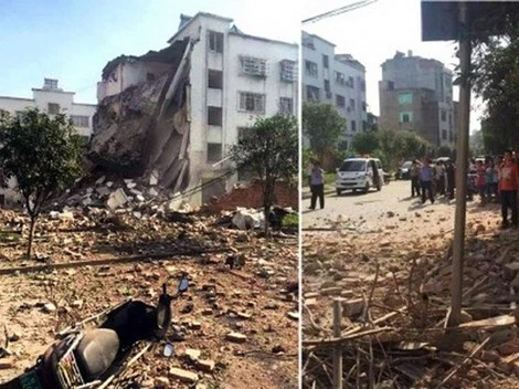 Một phần tòa nhà bị sụp đổ sau vụ nổ ở tỉnh Quảng Tây, Trung Quốc. (Nguồn: scmp.com)