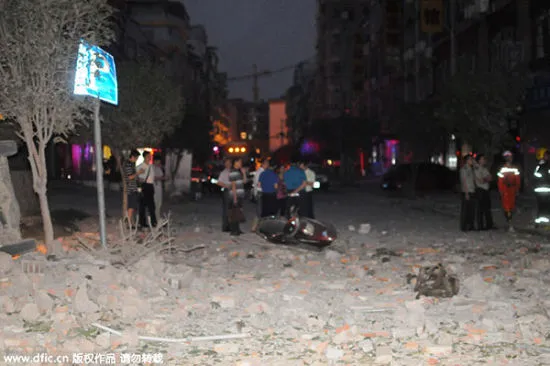 Người dân tụ tập tại một địa điểm nổ bom ở Liễu Thành, Quảng Tây hôm 30-4. (Nguồn: Sina.com)