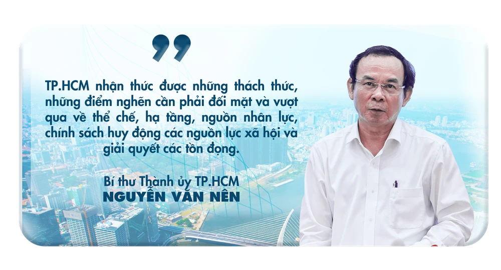 Bí thư TP.HCM nêu rõ TP nhận thức được những thách thức, những điểm nghẽn cần phải đối mặt và vượt qua về thể chế, hạ tầng, nguồn nhân lực, chính sách huy động các nguồn lực xã hội và giải quyết các tồn đọng.