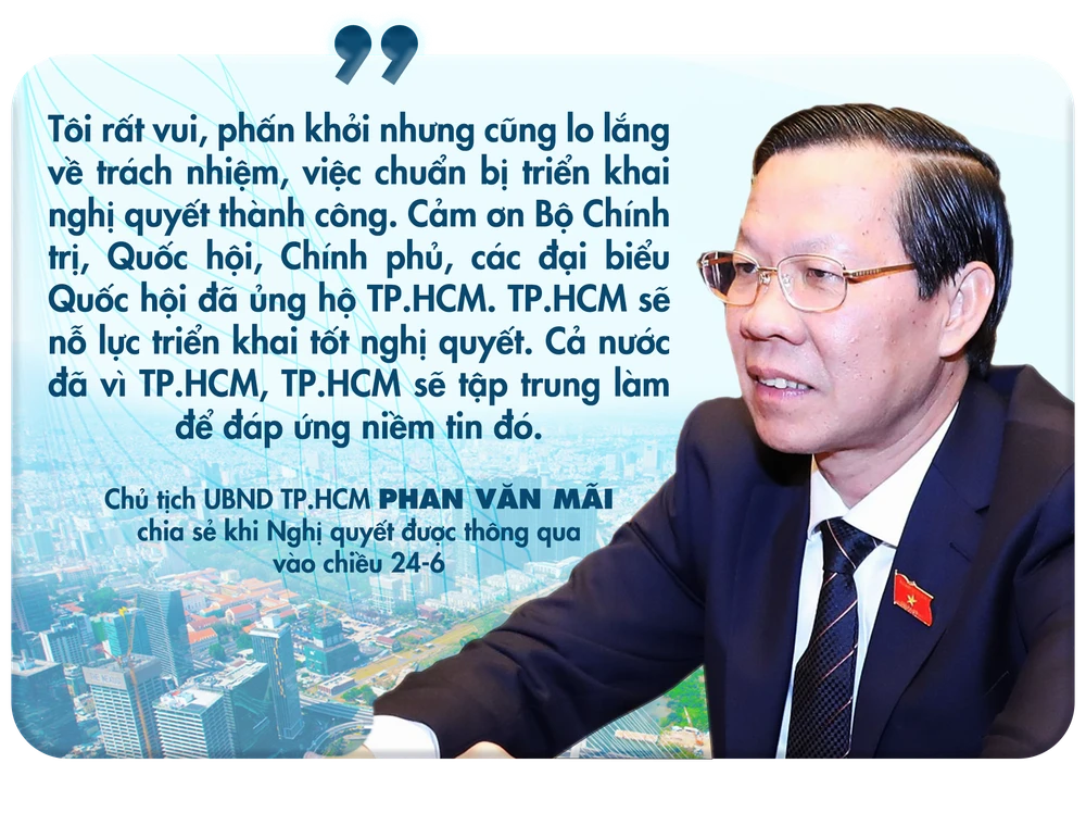 Hôm qua (24-6), Quốc hội (QH) đã bấm nút chính thức thông qua Nghị quyết thí điểm một số cơ chế, chính sách đặc thù phát triển TP.HCM, thay thế Nghị quyết 54/2017. Để có được kết quả này là sự nỗ lực rất lớn không chỉ của riêng TP.HCM mà còn của Chính phủ, bộ, ngành, các cơ quan Trung ương và nhiều ý kiến đóng góp từ các tỉnh, thành trên cả nước.