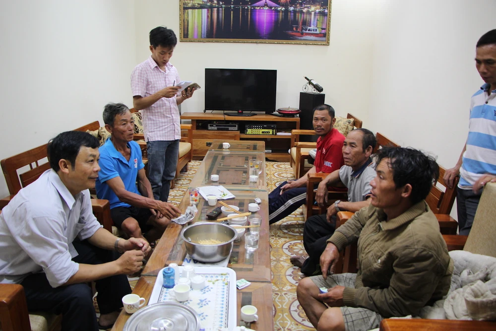 Các ngư dân bàng hoàng kể lại giây phút sinh tử trên biển sau khi bị tàu sắt đâm chìm gần bãi biển Tiên Sa, Đà Nẵng. Ảnh: LÊ PHI.
