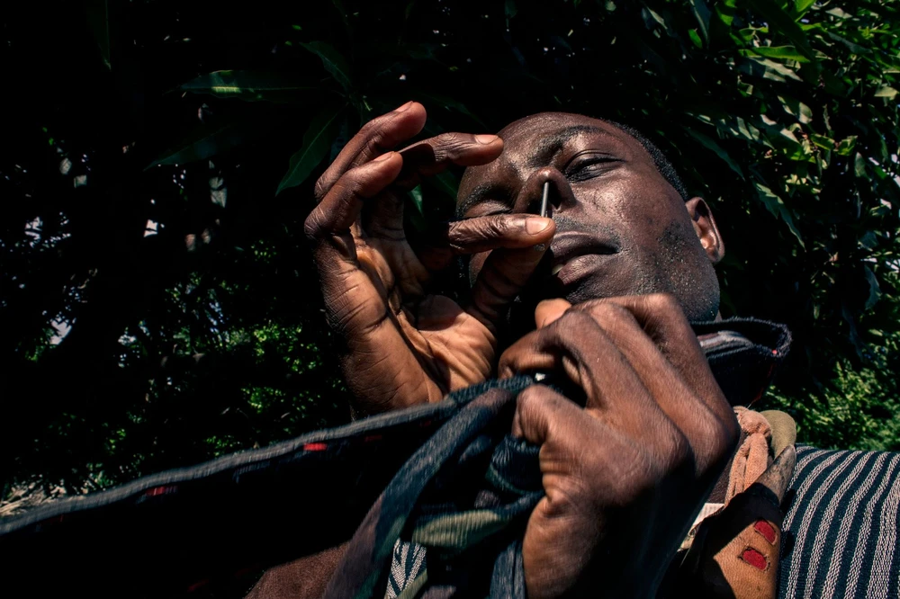 Một thanh niên Senegal đang thanh tẩy bằng nước thánh. Ảnh :