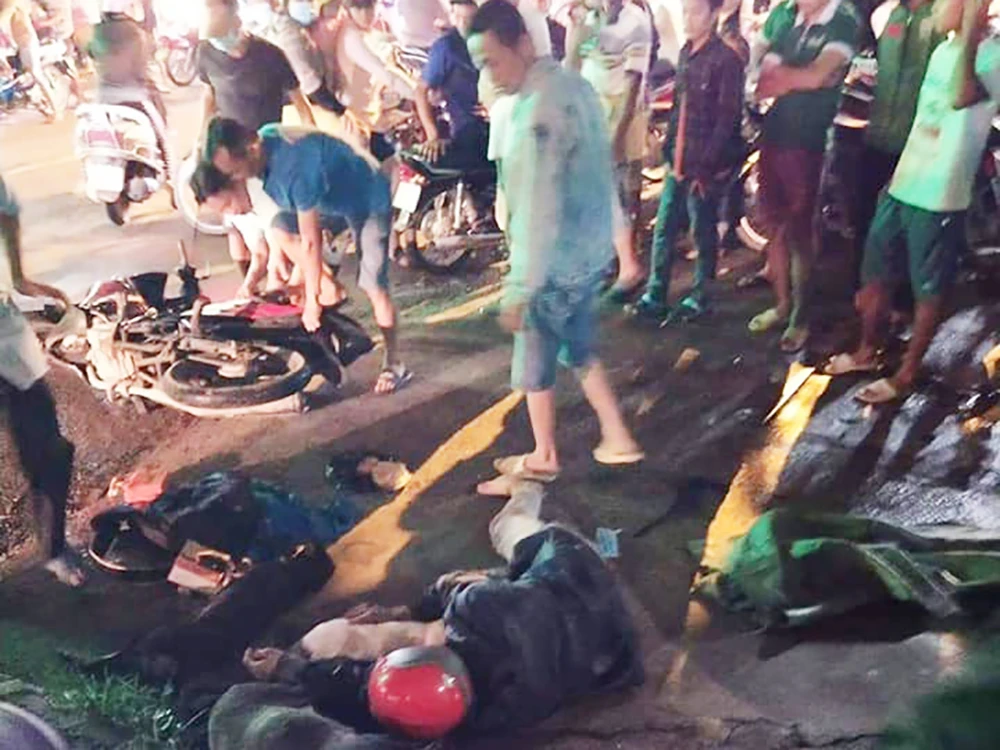 Người nhà của nam thanh niên này cũng có mặt ở hiện trường để giải quyết. Chiếc xe máy bị hư hỏng nhẹ cùng các tang vật liên quan được đưa về trụ sở công an làm rõ.