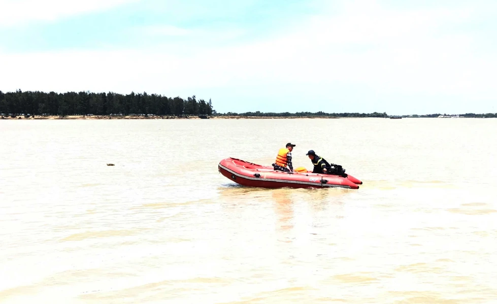 Dưới nắng nóng, cảnh sát đang quần thảo trên sông Lam tìm kiếm chị D.