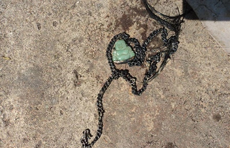 Chiếc áo và sợi dây chuyền Đạt đeo trên cổ khi người dân phát hiện thi thể nạn nhân. (Ảnh do cơ quan công an cung cấp)