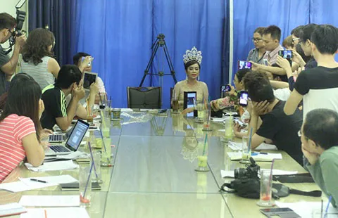 Bà Bích Liên - đội vương miện - trong cuộc gặp gỡ báo chí trưa 14-10 tại TP.HCM do Việt show tổ chức. Ảnh: HÒA BÌNH