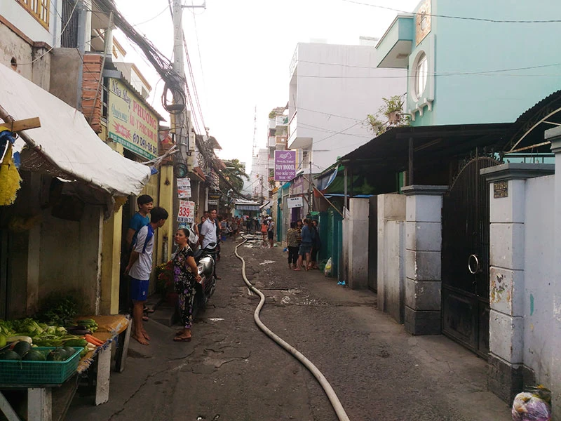 Nhiều người dân hô hoán, kêu cứu và huy động các biện pháp cứu hỏa tại chỗ nhưng do khói lửa bốc lên dữ dội, hẻm sâu nên gặp nhiều khó khăn.