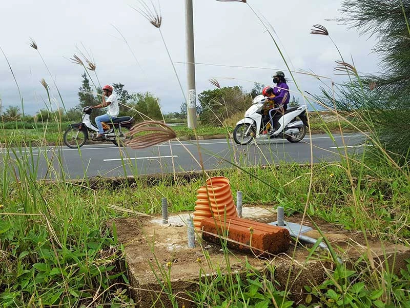 Một trong những hạng mục chính của dự án trên là xây lắp điện chiếu sáng công cộng, điện trang trí cho đoạn đường trên. Thế nhưng theo một số chủ doanh nghiệp (DN), hầu hết móng của các trụ đèn chiếu sáng, trang trí này đã hoàn thành từ lâu. Toàn bộ hệ thống tiếp địa, ống nhựa ngầm cũng được lắp đặt xong.