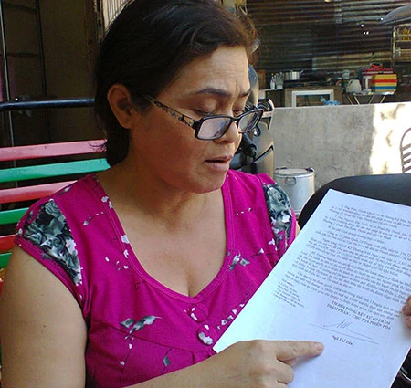 Bà Nguyễn Thị Thu Dung đang trình bày về việc quyết định của bản án phát hành khác với án tuyên tại phiên tòa. Ảnh: LT