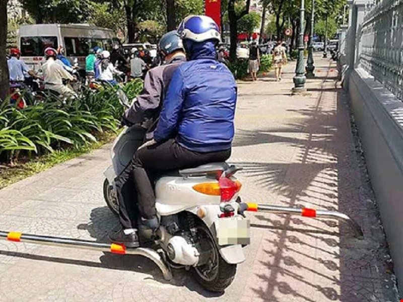 Một trường hợp cố tình lách qua barie trước Bảo tàng TP.HCM để chạy xe trên vỉa hè. Ảnh: NHĐ