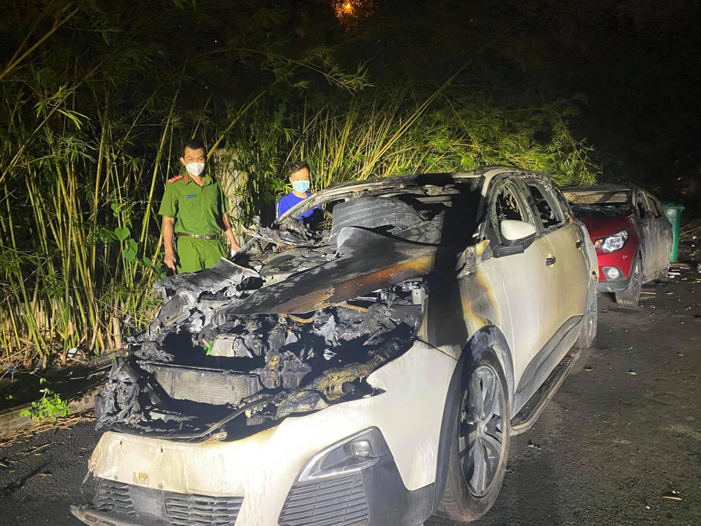 Khi chiếc xe bốc cháy thì Toàn bỏ đi. Lửa thiêu chiếc ô tô và cháy lan sang một ô tô bên cạnh.