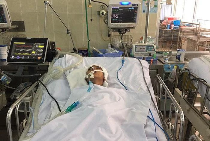 Bé Đạt hôn mê trên giường bệnh. Ảnh: BÁ HUY - ML