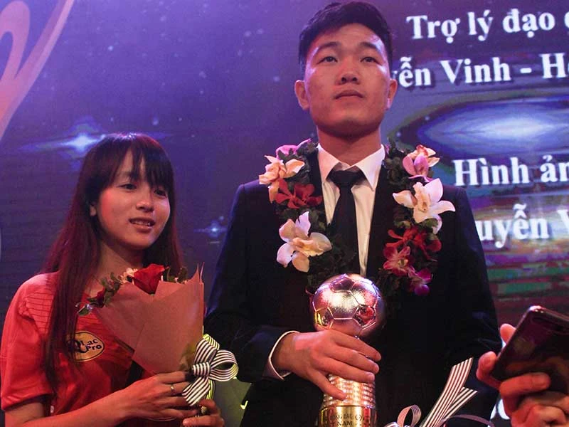 Xuân Trường nhận Quả bóng bạc năm 2016. Ảnh: ĐỨC HUY