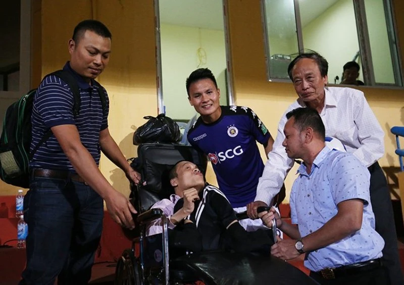 Nghĩa cử của Quang Hải với người cổ động viên đặc biệt - anh Hà Cừ. Ảnh: PV