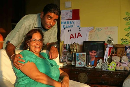 Anh chị Jaidipsing- Karen bên bàn thờ con gái Sonia.
