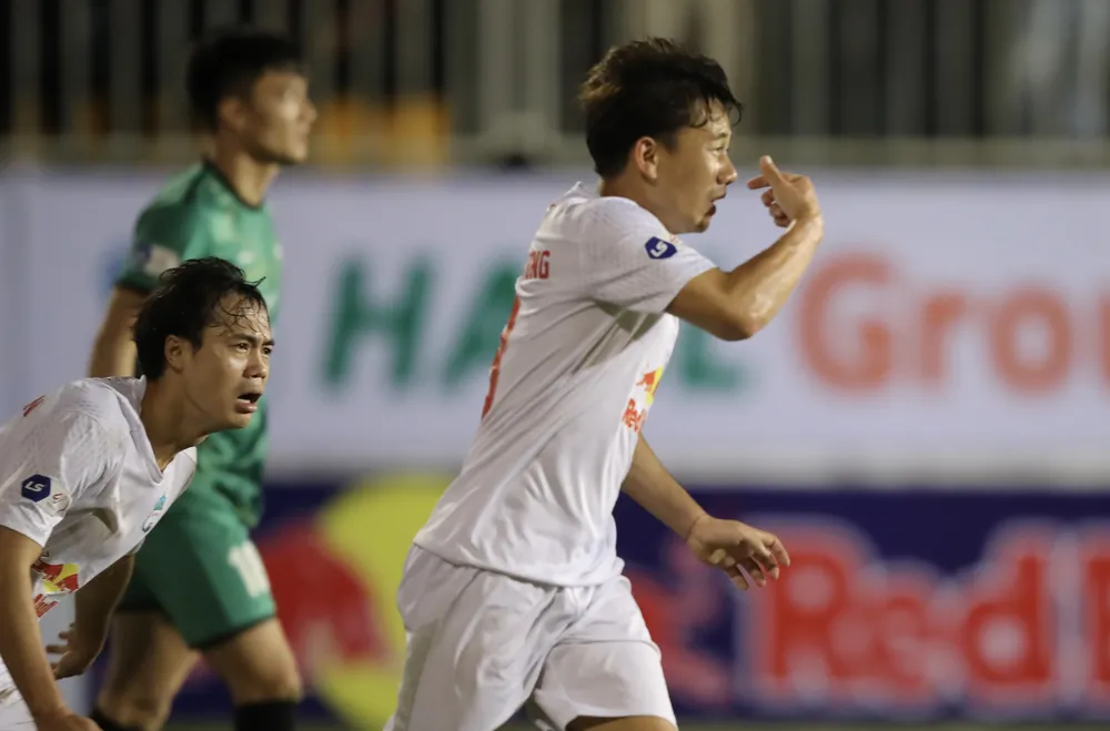 Tiền vệ Minh Vương dũng mãnh trên sân bóng...