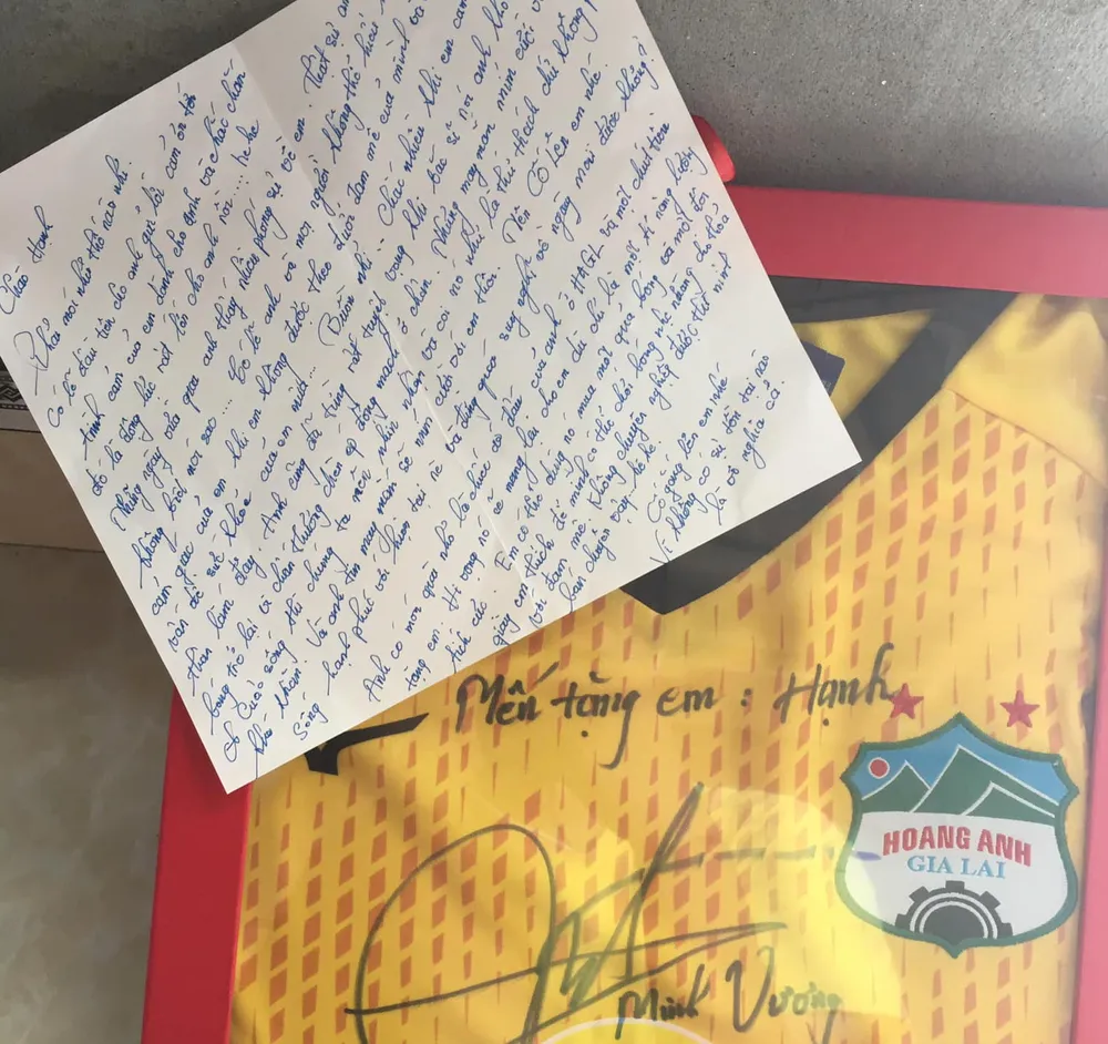 Ở thời buổi Internet bùng nổ, rất hiếm hoi người ta còn bắt gặp những lá thư viết tay gửi cho nhau đong đầy tình cảm, đặc biệt trong giới cầu thủ thường bị cho là khô khan. Vậy mà tiền vệ Minh Vương đã rất nắn nót viết một lá thư gửi cho cô gái trẻ đồng nghiệp không may mắn, với món quà nhỏ và những lời động viên chân thành lay động lòng người.