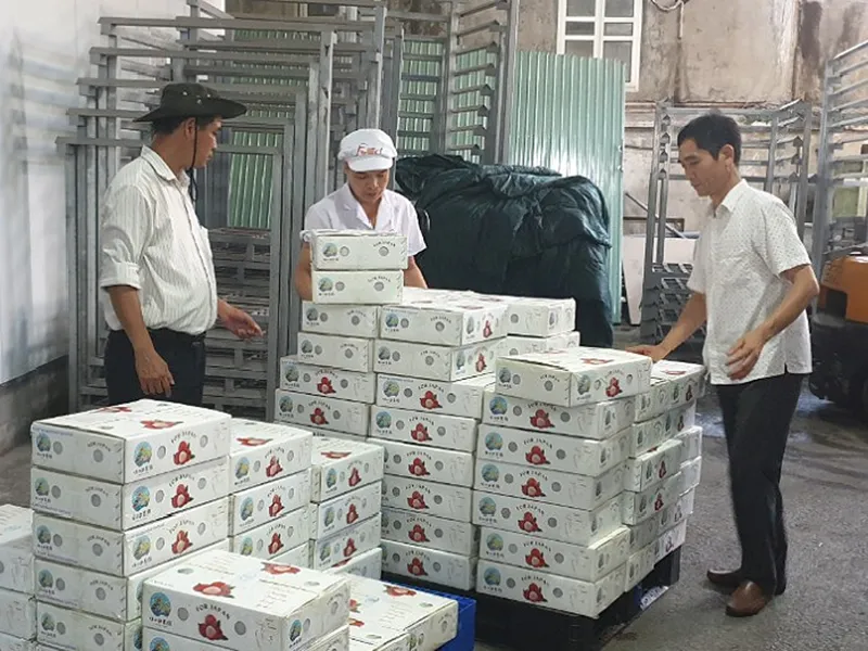 Chi phí logistics của trái vải thiều chiếm 30%-40% giá trị sản phẩm. Trong ảnh:Vải thiều đang được đóng thùng để xuất khẩu sang Nhật. Ảnh: CTV