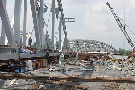 Công tác nghiệm thu các nhịp dầm cầu Ghềnh mới sẽ hoàn thành trong ngày 10-6.