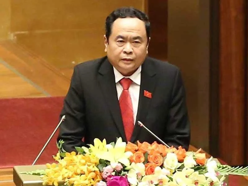 Chủ tịch Ủy ban Trung ương Mặt trận Tổ quốc Việt Nam Trần Thanh Mẫn trình bày Báo cáo tổng hợp ý kiến, kiến nghị của cử tri và nhân dân cả nước gửi đến kỳ họp thứ 7, Quốc hội khóa XIV. Ảnh: TTXVN