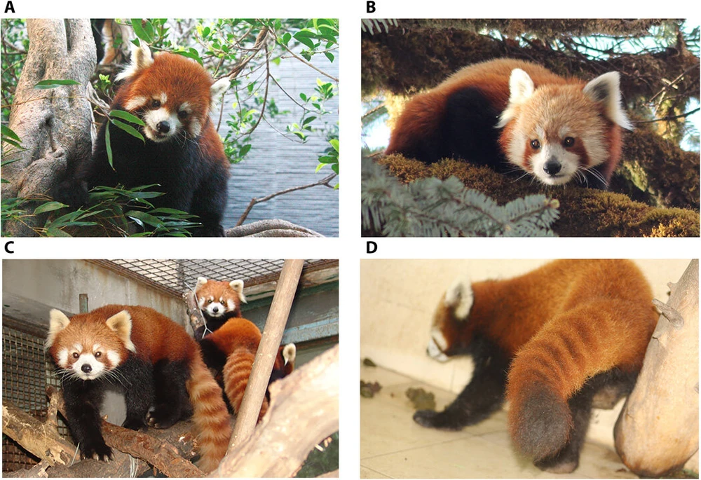 Các cá thể A và C là gấu trúc đỏ Trung Quốc, các cá thể B và D là gấu trúc đỏ Himalaya. Ảnh: PHYS.ORG