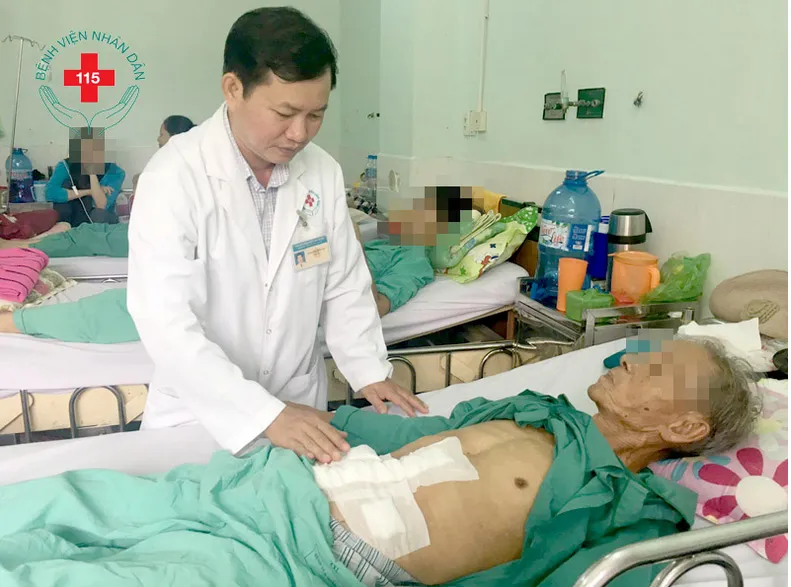 Ông H. đang được bác sĩ chăm sóc sau mổ. Ảnh: THIÊN NHÂN