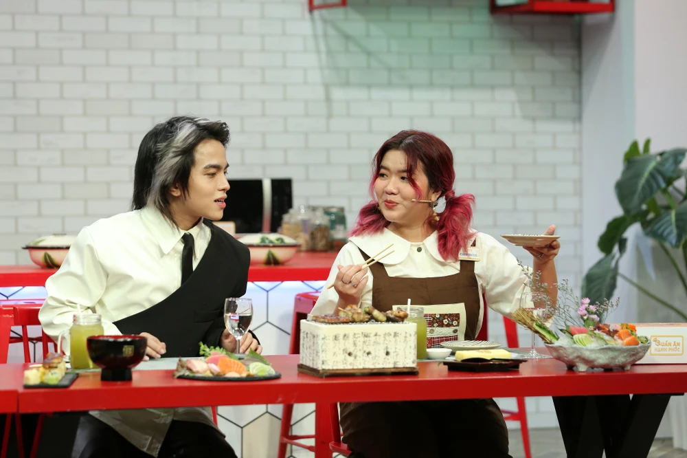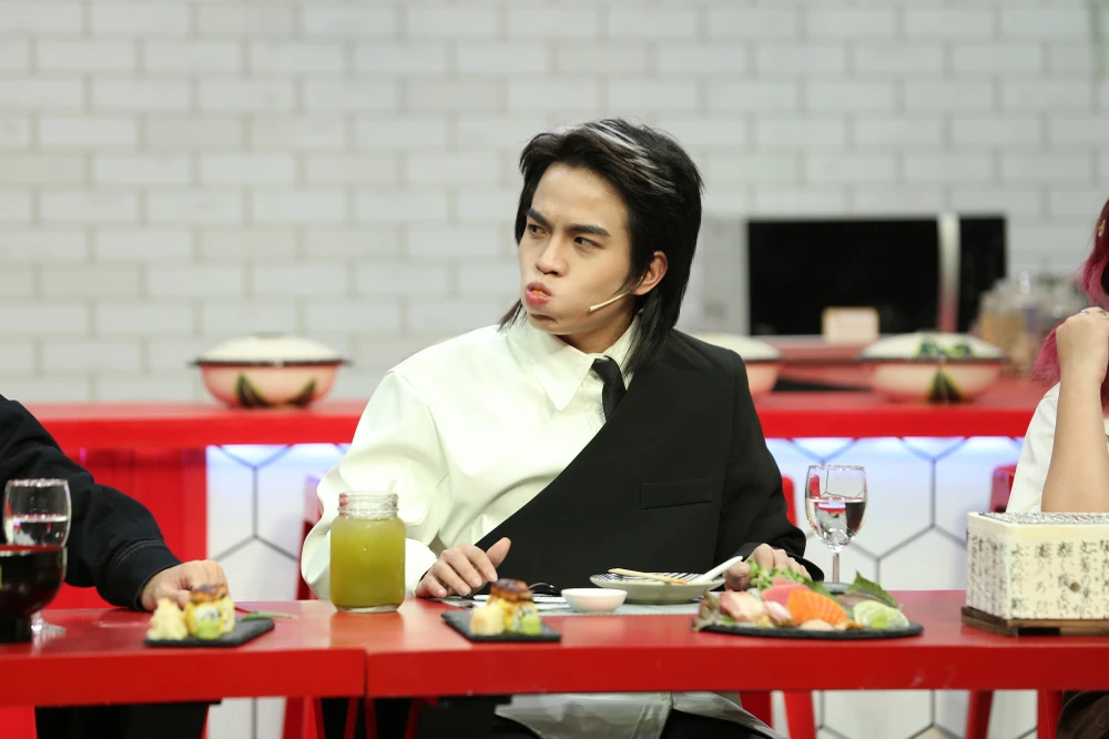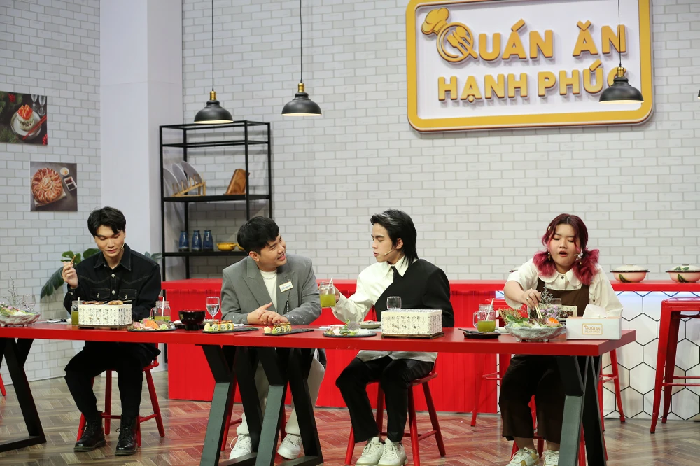 Thánh review mới nổi Ngô Đình Nam tiếp tục trổ tài phán: “Em thì cảm giác như kiểu Lươn ơi lươn ở lại ấy. Vừa dứt lời, Dương Vũ, Quốc Khánh và Chen Ru Lu đang ăn cũng phải bật cười nắc nẻ.