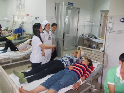 Các công nhân nhập viện cấp cứu (Ảnh: Nguyên Hưng)