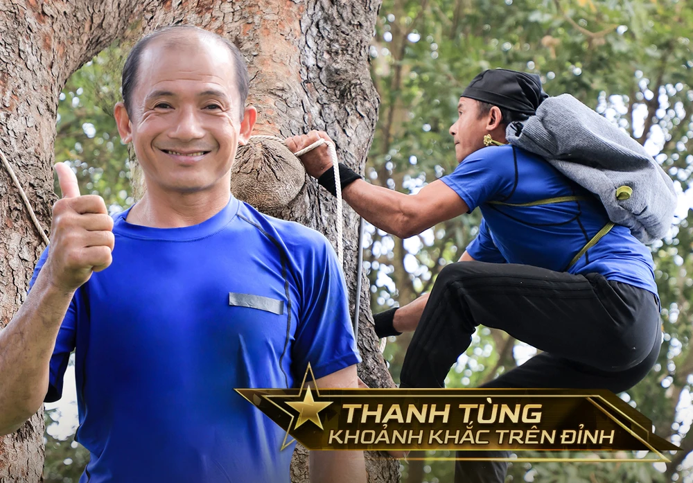 Thử thách dành cho ông Tùng có tên là Khoảnh khắc trên đỉnh. Ở cấp độ đầu tiên, thách thức ông phải dùng tay không leo lên một cái cây cao 20m để lấy được ít nhất 10 chai nước được treo ở những vị trí khó.