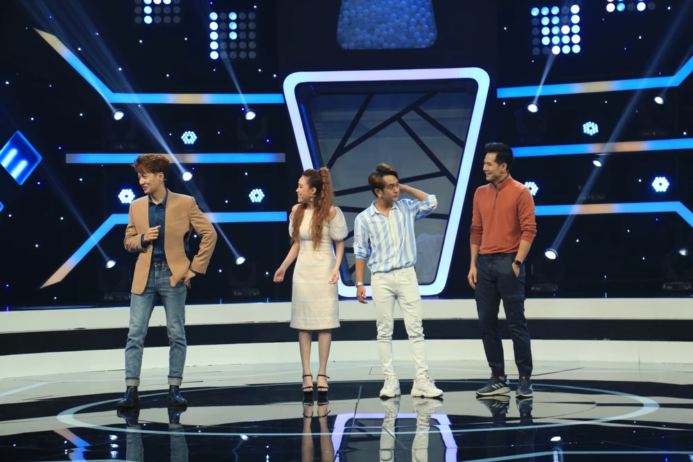 Vừa mở màn chương trình Phương Hằng khen đẹp trai, Ngô Kiến Huy mặt đỏ ửng, quay lưng đi để lấy lại bình tĩnh.