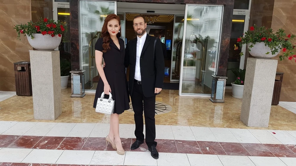 Khánh Ngân với quan khách của cuộc thi ở Albania.