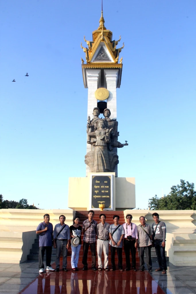 Tại thủ đô Phnom Penh, khi đi thăm đài Độc Lập ở quảng trường trung tâm thành phố, tất cả anh em trong đoàn háo hức đến chiêm ngưỡng và chụp ảnh lưu niệm trước tượng đài hữu nghị Campuchia - Việt Nam.