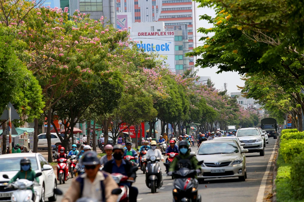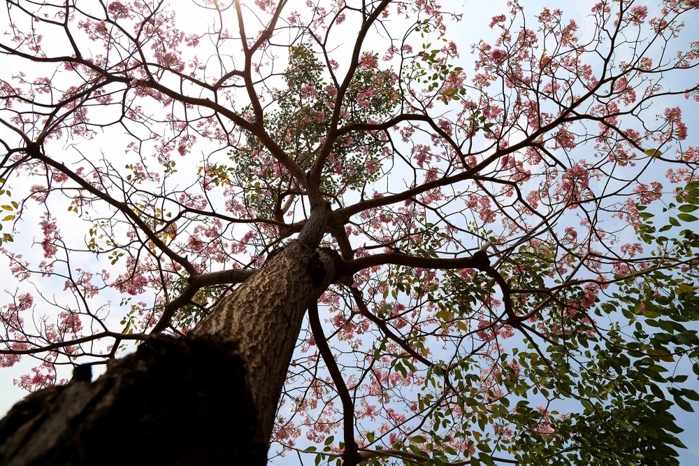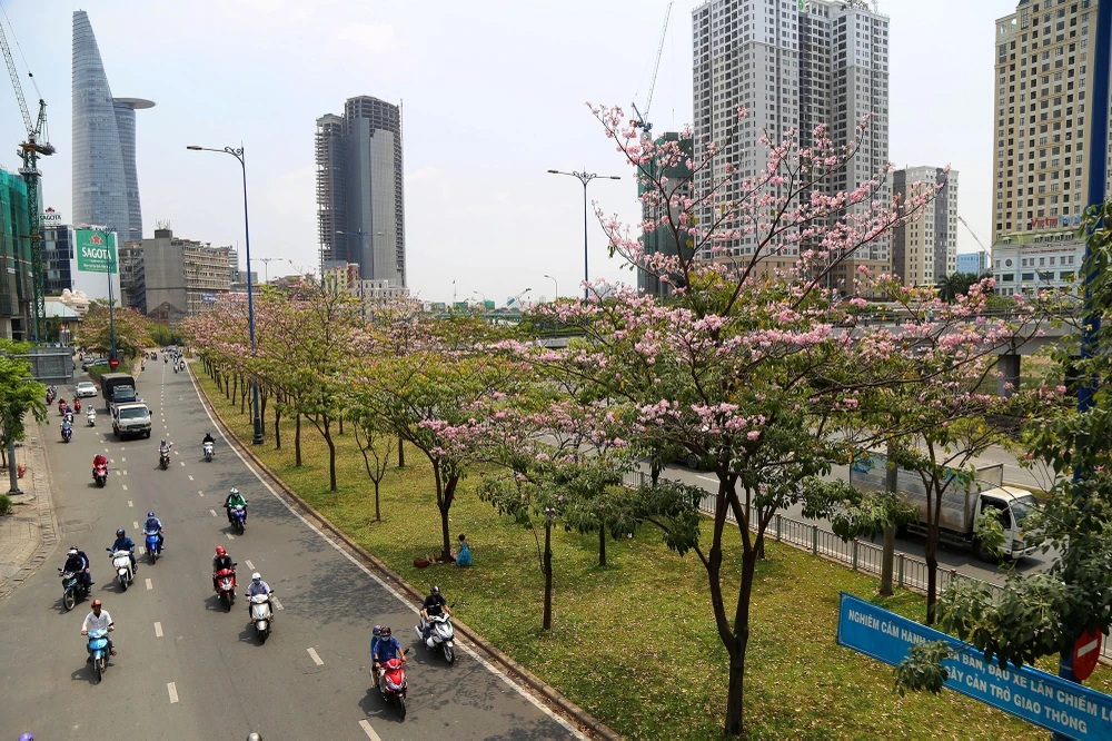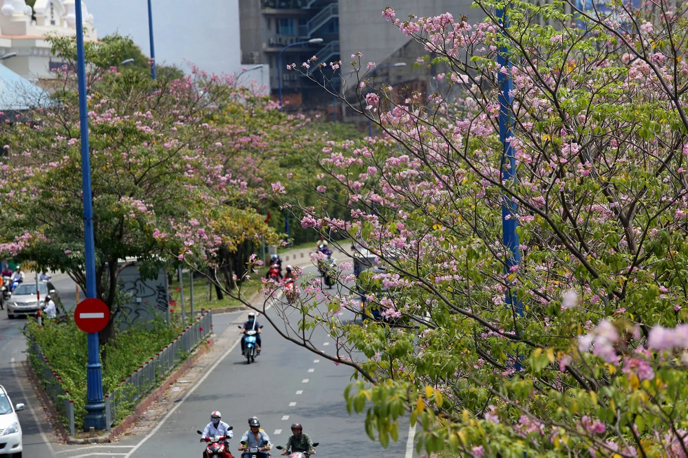 Không chỉ giúp giảm bớt cái nắng gắt, những tán cây kèn hồng còn khiến Sài Gòn thêm phần thơ mộng.
